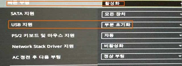바이오스 초기값을 따르십시오.